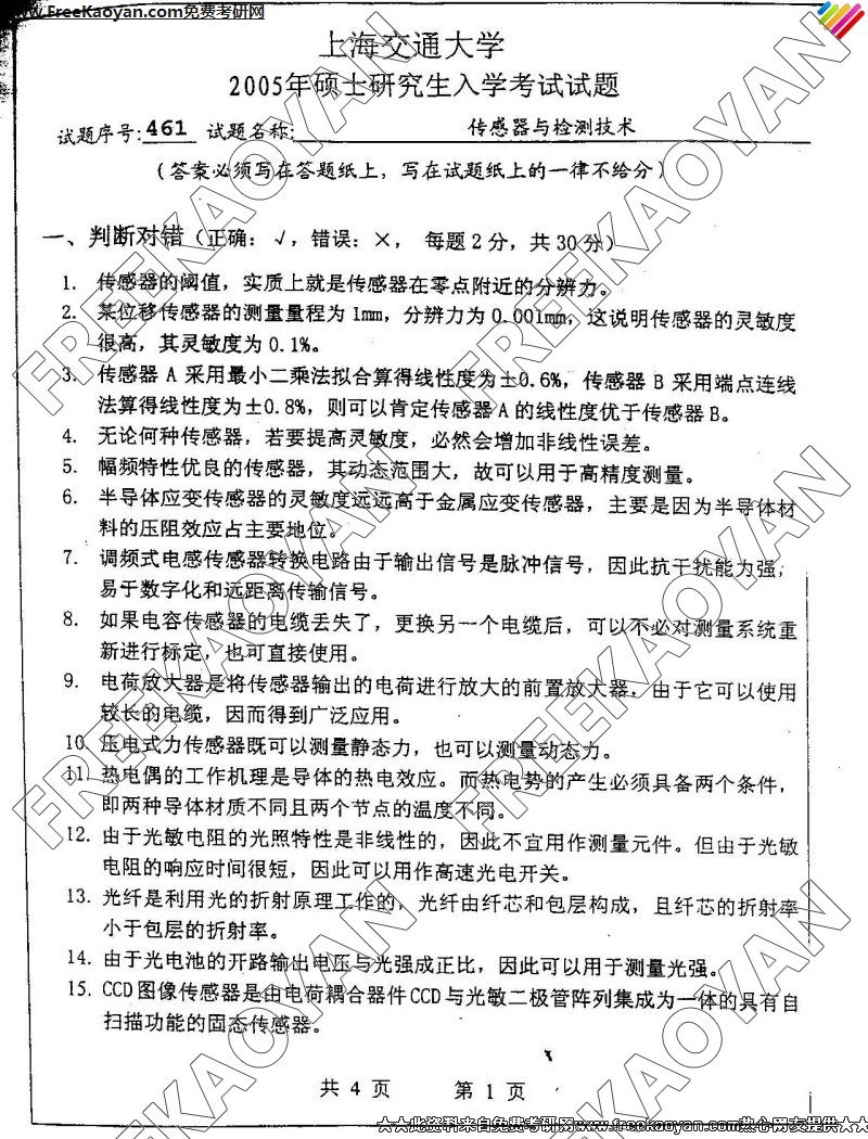 上海交通大学2005年半岛在线注册真题-传感器与检测技术