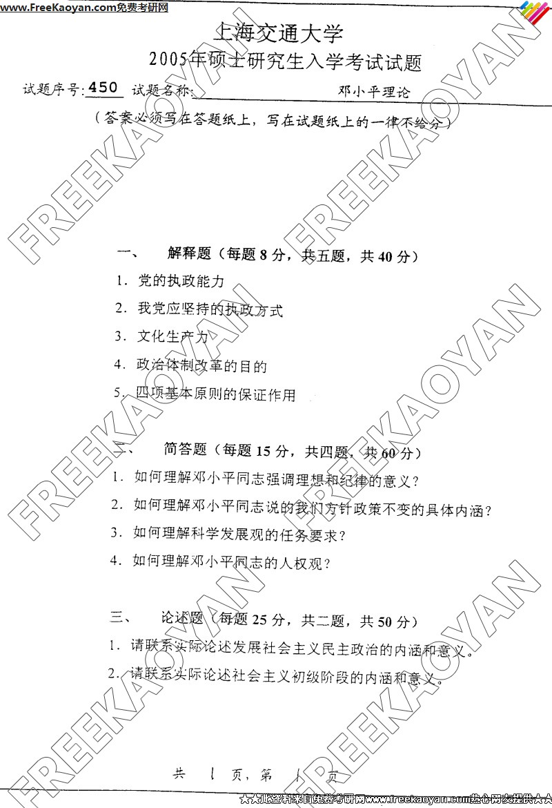 上海交通大学2005年半岛在线注册真题-邓小平理论