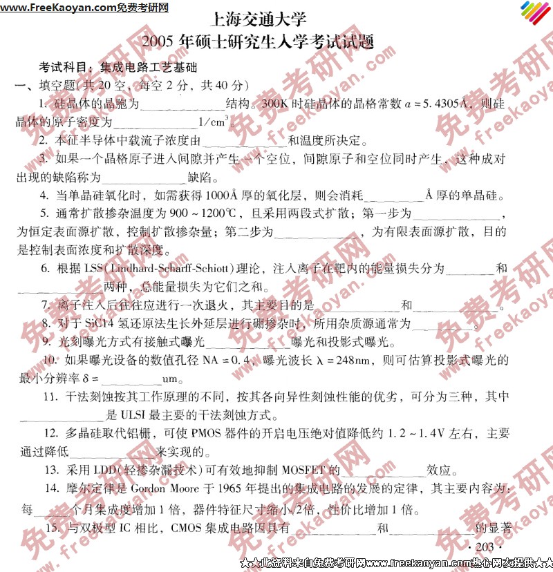 相关话题/半岛在线注册真题 上海交通大学 集成电路 基础 工艺