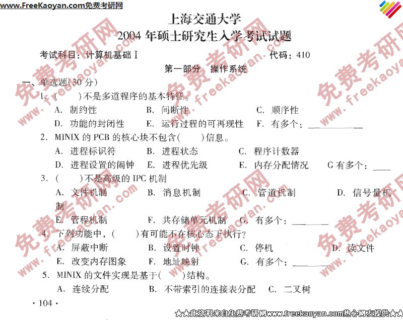 专业课半岛在线注册经验 本站小编 FreeKaoyan 2018-01-23上海交通大学2005年半岛在线注册真题-计算机基础(2)