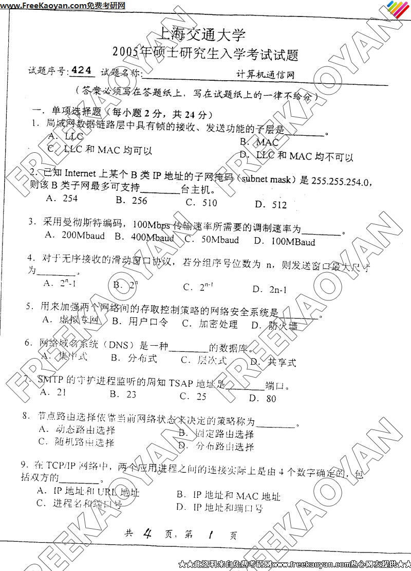 相关话题/半岛在线注册真题 计算机 上海交通大学 通信网