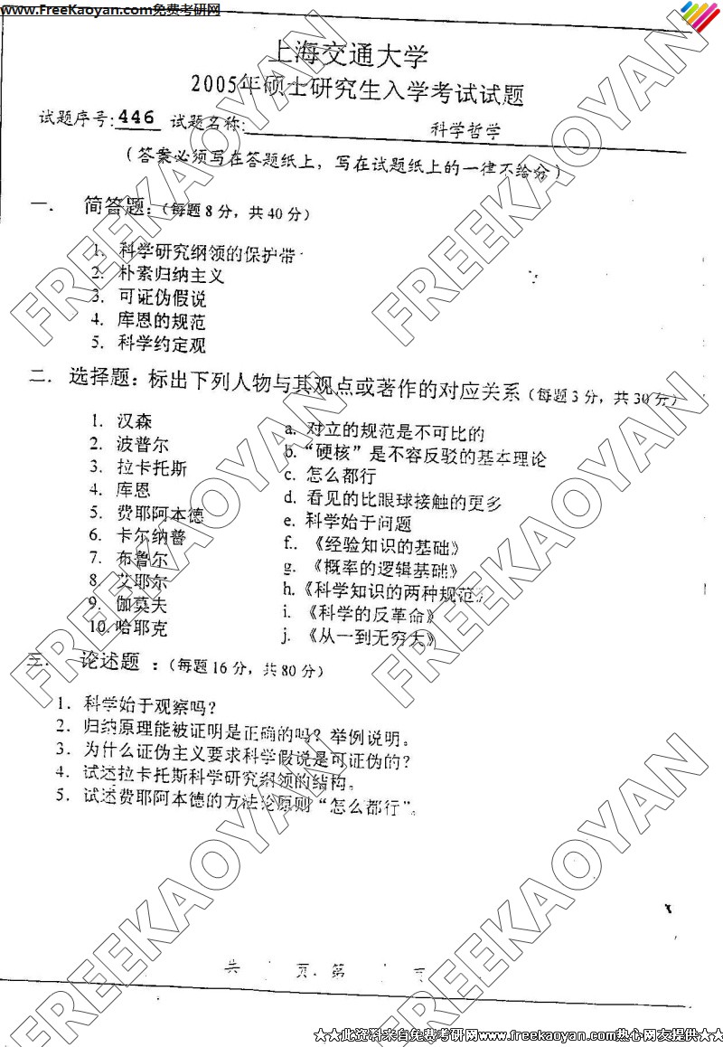 专业课半岛在线注册经验 本站小编 FreeKaoyan 2018-01-23上海交通大学2005年半岛在线注册真题-科学史