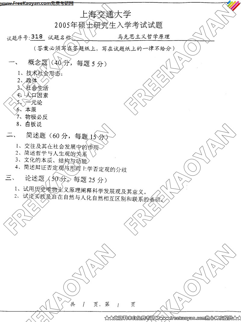 专业课半岛在线注册经验 本站小编 FreeKaoyan 2018-01-23上海交通大学2005年半岛在线注册真题-科学哲学