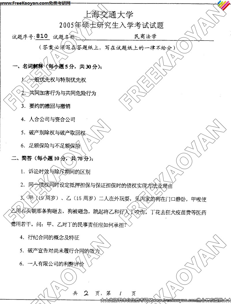 相关话题/上海交通大学 半岛在线注册真题 民商法学