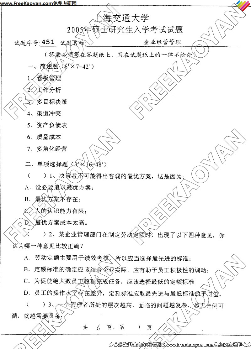 上海交通大学2005年半岛在线注册真题-企业经营管理