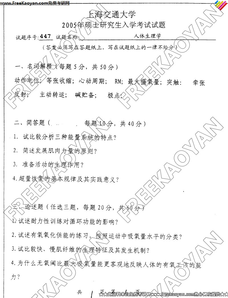 上海交通大学2005年半岛在线注册真题-人体生理学
