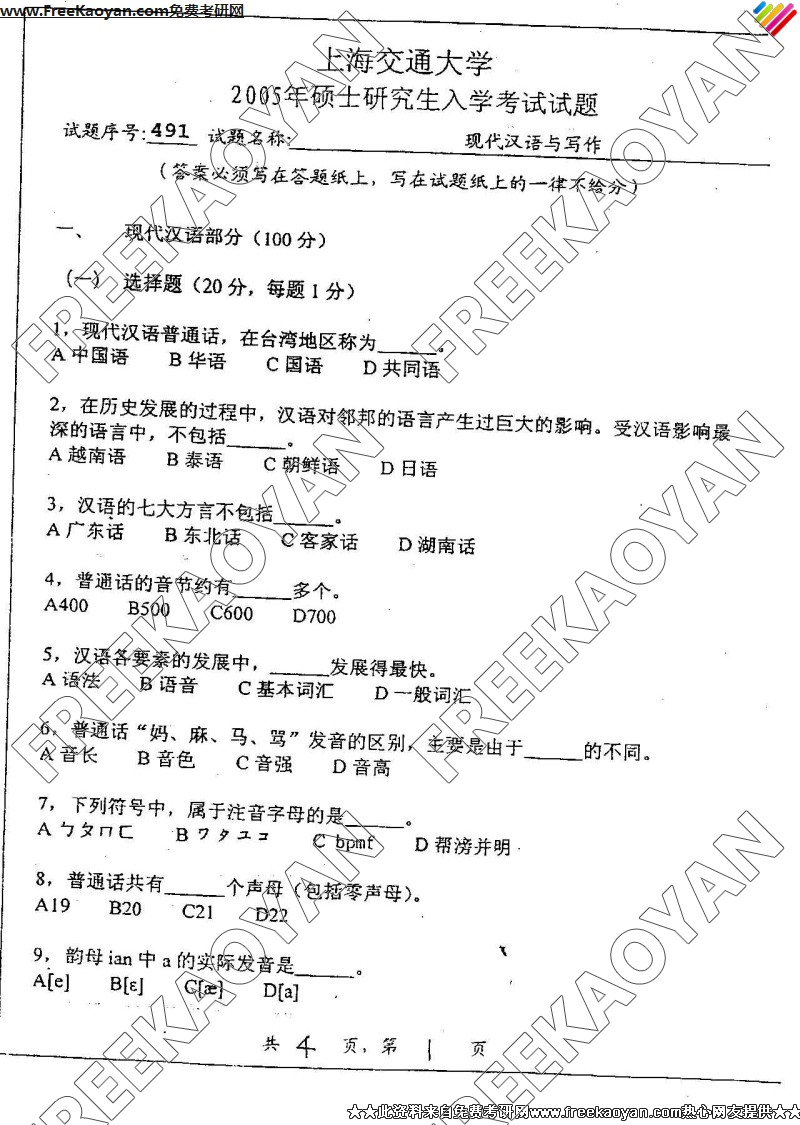 上海交通大学2005年半岛在线注册真题-现代汉语与写作
