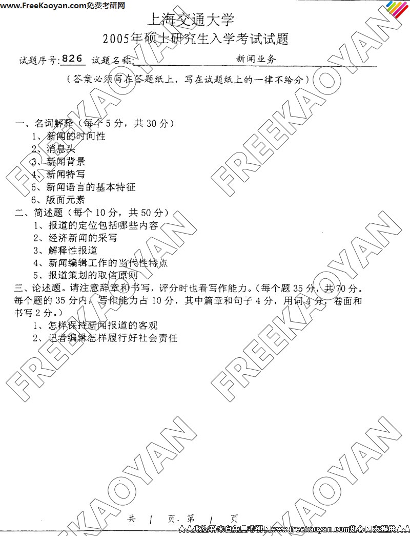 上海交通大学2005年半岛在线注册真题-新闻业务