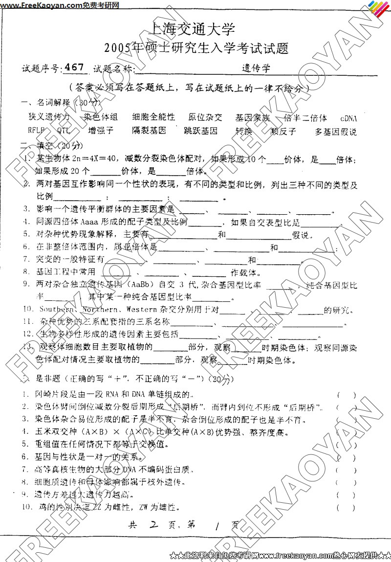相关话题/上海交通大学 半岛在线注册真题 遗传学