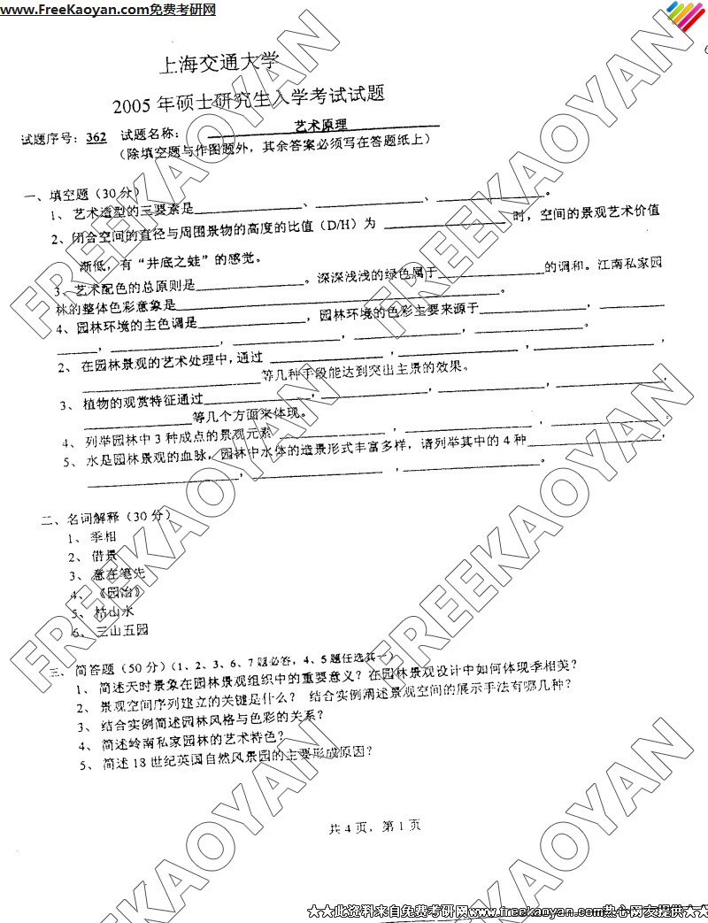 上海交通大学2005年半岛在线注册真题-艺术原理