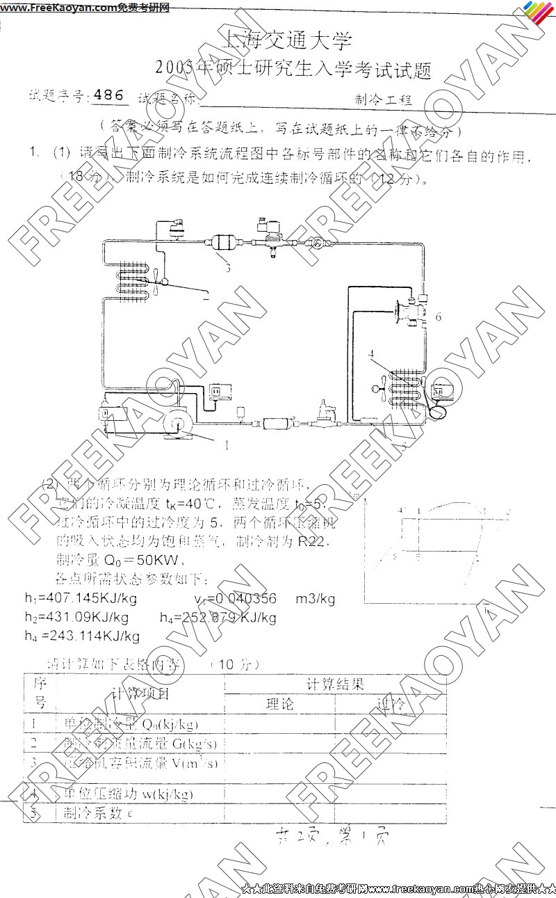 上海交通大学2005年半岛在线注册真题-制冷工程
