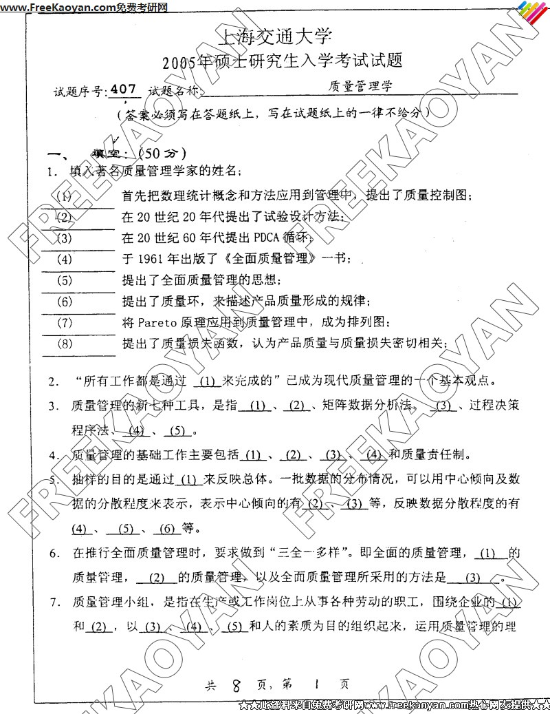 上海交通大学2005年半岛在线注册真题-质量管理学