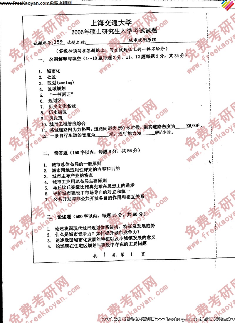 专业课半岛在线注册经验 本站小编 FreeKaoyan 2018-01-23上海交通大学2006年半岛在线注册真题-城市规划设计