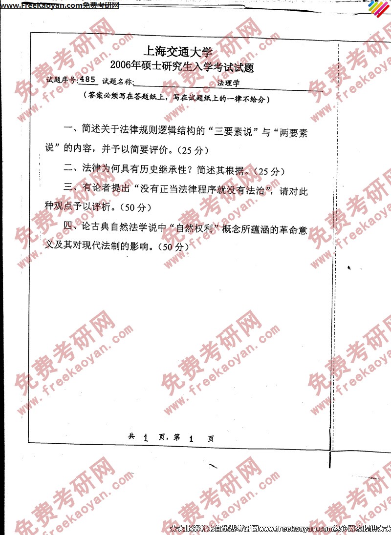 上海交通大学2006年半岛在线注册真题-法理学