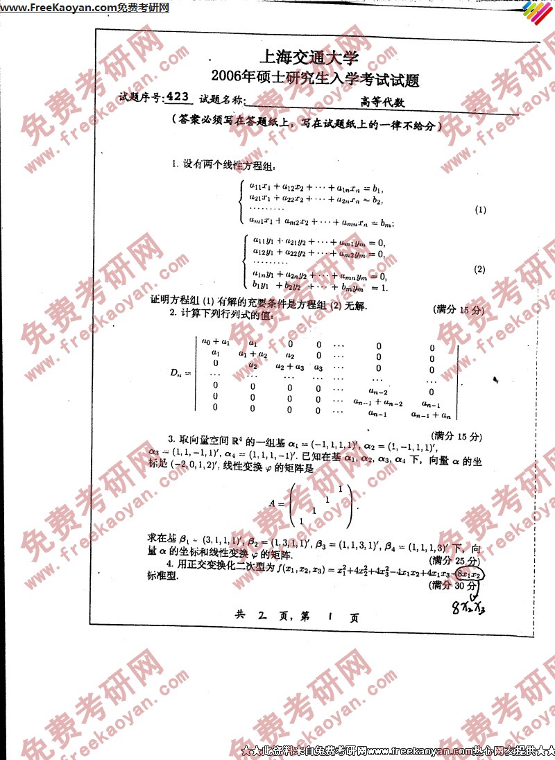 相关话题/上海交通大学 半岛在线注册真题 高等代数