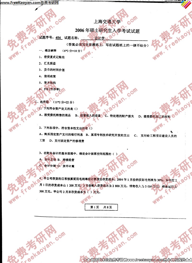 专业课半岛在线注册经验 本站小编 FreeKaoyan 2018-01-23上海交通大学2006年半岛在线注册真题-国际贸易与国际金融