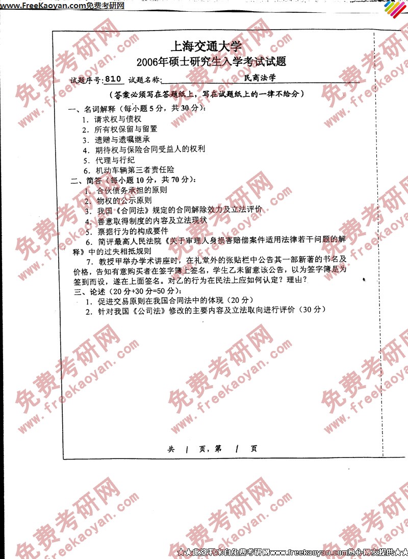 相关话题/上海交通大学 半岛在线注册真题 民商法学