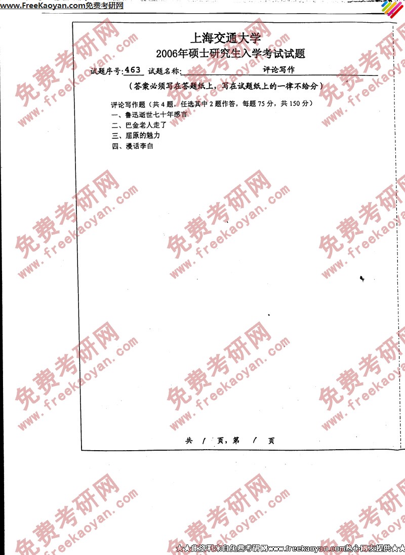 专业课半岛在线注册经验 本站小编 FreeKaoyan 2018-01-23上海交通大学2006年半岛在线注册真题-马克思主义哲学原著