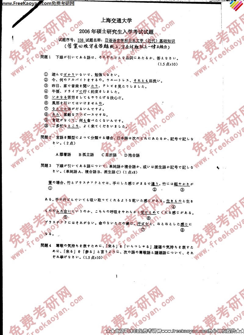 专业课半岛在线注册经验 本站小编 FreeKaoyan 2018-01-23上海交通大学2006年半岛在线注册真题-日语水平考试