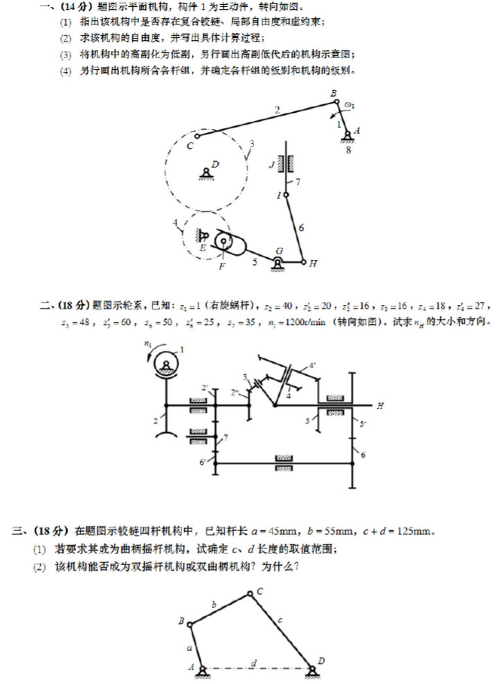 题目很常规,都是基本的概念,在杨家军《机械设计与机械原理半岛在线注册指南》上基本都能找到原题;