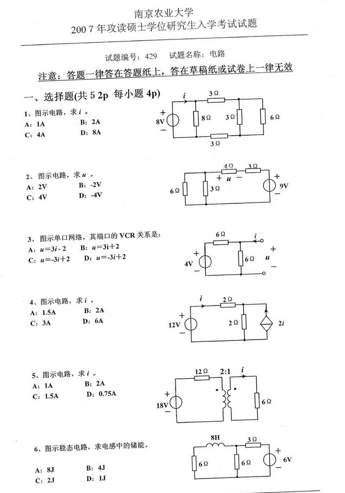 上海交通大学2013年电路半岛在线注册真题手写版 ...