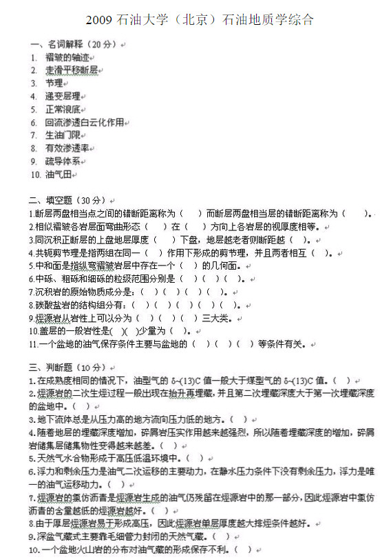 专业课半岛在线注册资料 本站小编 半岛在线注册 2015-10-222010中国石油大学(北京)石油地质学综合真题回忆