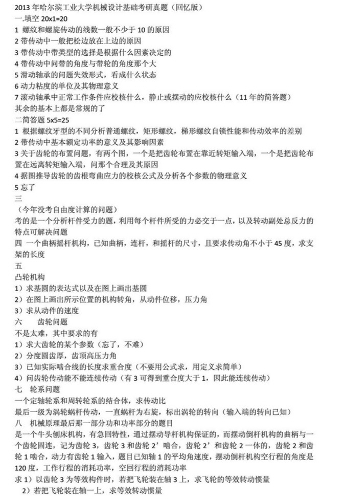 2013年哈尔滨工业大学《839机械设计基础(含机械原理与机械设计)》半岛在线注册试题(回忆版)