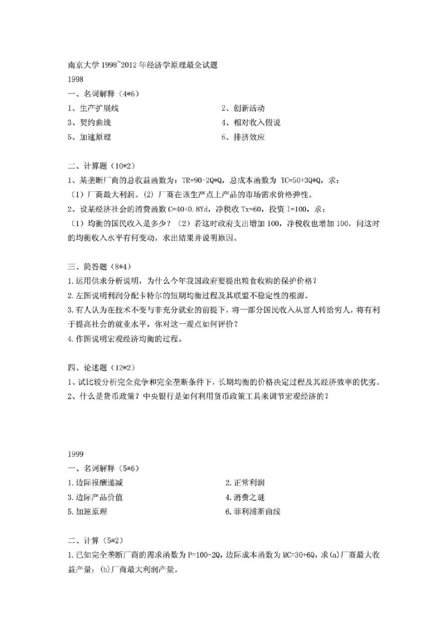 2013年南京大学919经济学原理半岛在线注册真题及详解