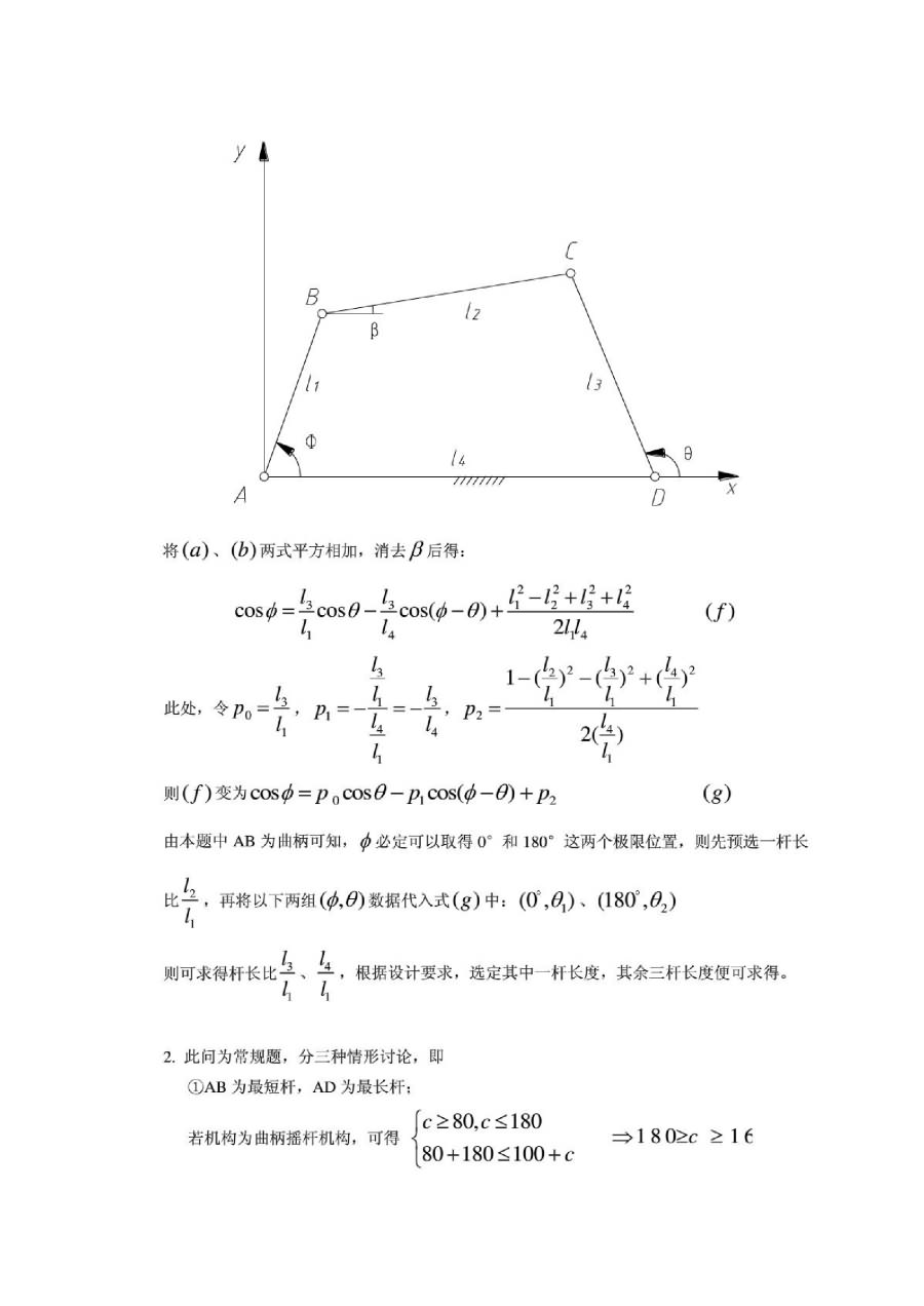 2、试分析并简述根据给定两连架杆的位置设计四杆机构的过程。