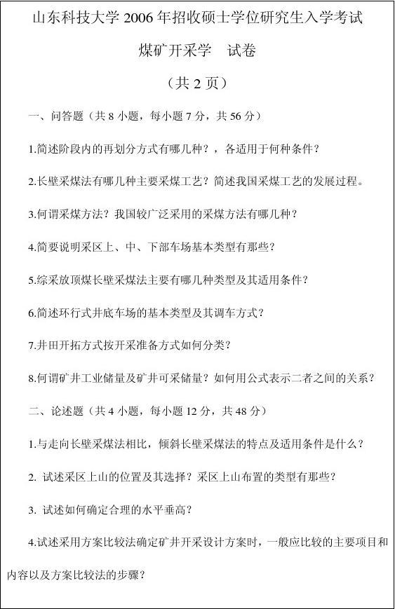 1、分析上、下山开采的优劣及其适用条件? (15分)