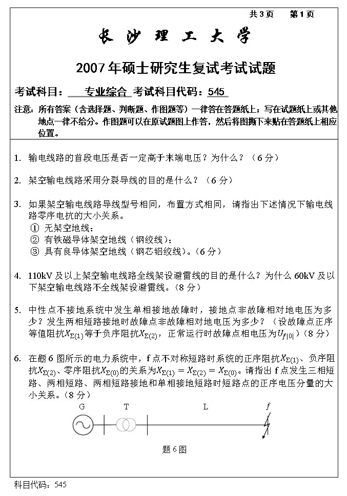 长沙理工大学2007年硕士研究生复试电气工程基础试题