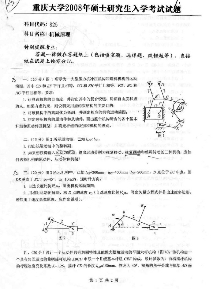2008年重庆大学机械原理半岛在线注册试卷