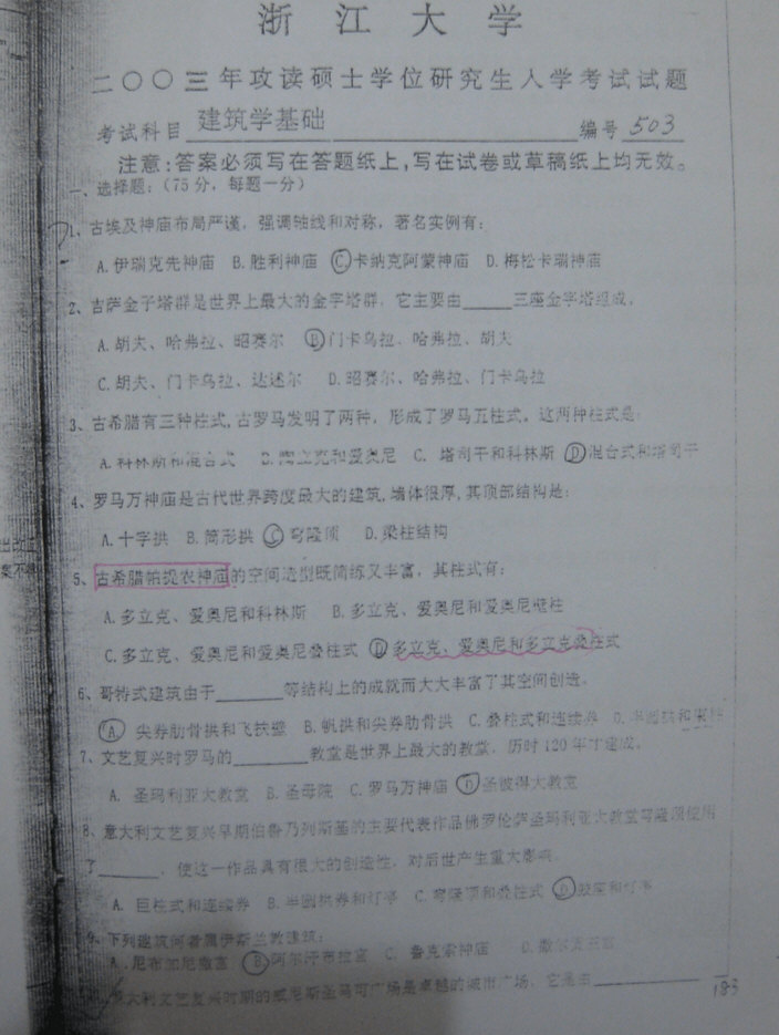 1990-2008 同济大学研究生入学考试建筑史试题 1990