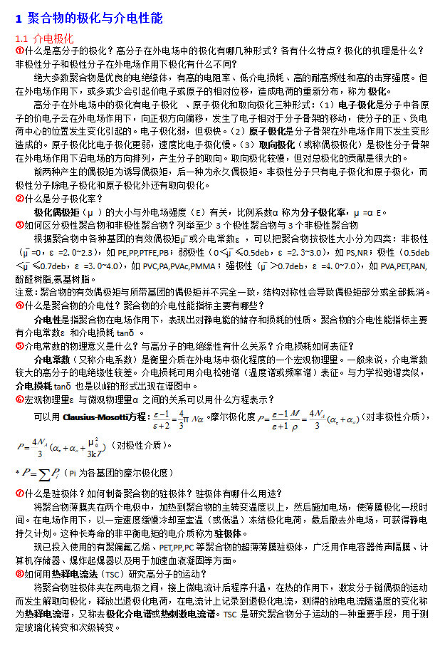高分子物理半岛在线注册习题整理09 聚合物的电学性能