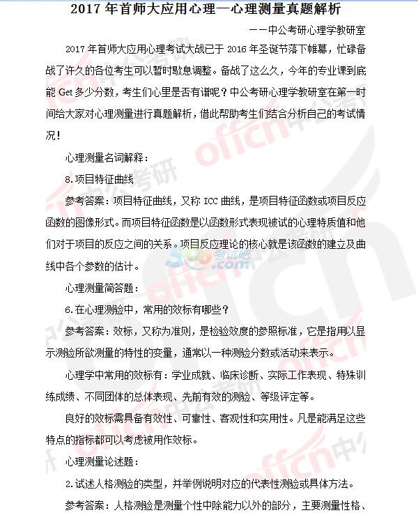 2017年半岛在线注册心理测量真题解析(首都师范大学347)
