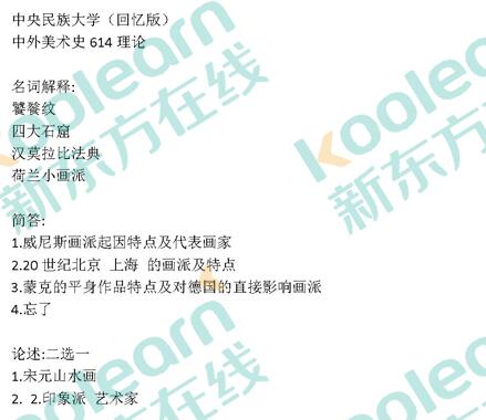 2017半岛在线注册中央民族大学中外美术史614真题