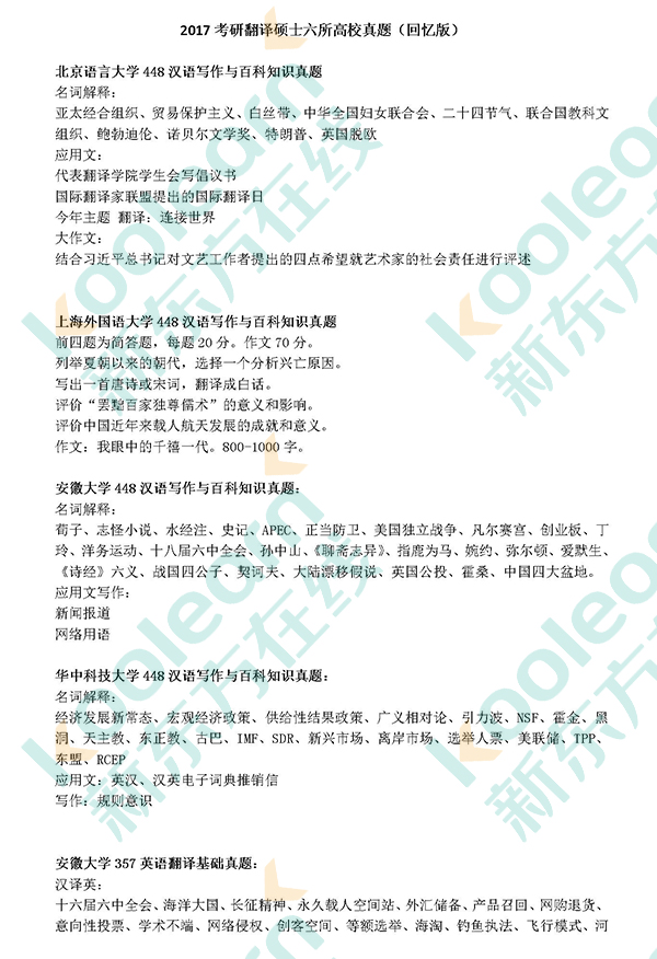 2017英语翻译硕士六所高校半岛在线注册真题(回忆版)