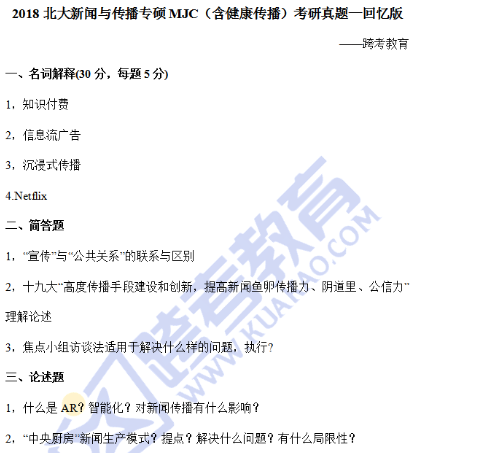 2018北大新闻与传播专硕MJC(含健康传播)半岛在线注册真题—回忆版