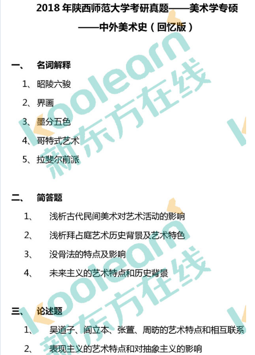 2018年陕西师范大学半岛在线注册真题美术学专硕中外美术史(回忆版)