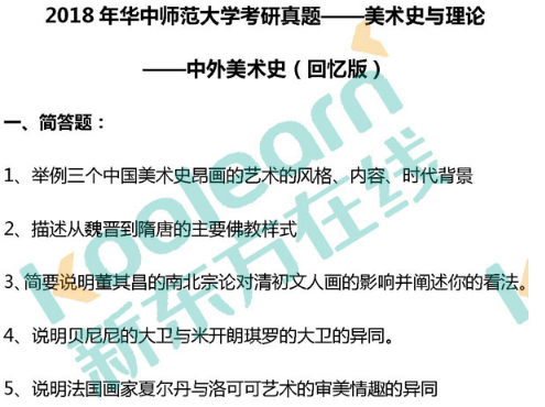 2018年华中师范大学半岛在线注册真题美术史与理论中外美术史(回忆版)