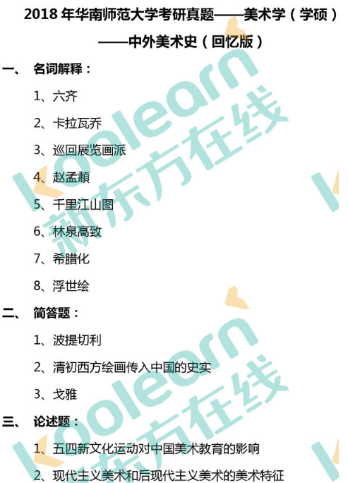 2018年华南师范大学半岛在线注册真题美术学学硕中外美术史(回忆版)