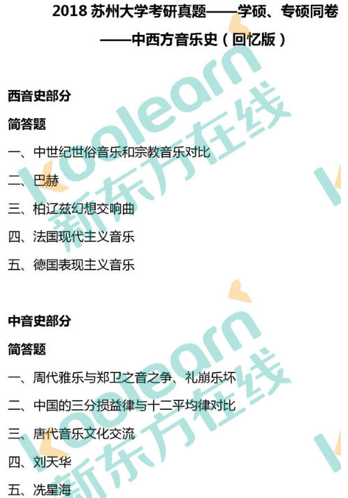 2018年苏州大学半岛在线注册真题学硕专硕同卷中西方音乐史(回忆版)