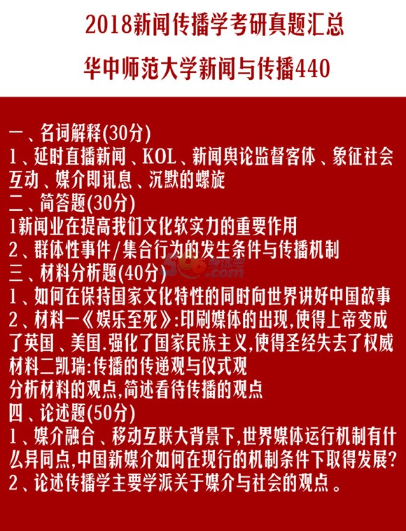 专业课半岛在线注册资料 本站小编 半岛在线注册 2018-01-03华中师范大学2018半岛在线注册440新闻传播学真题 ...