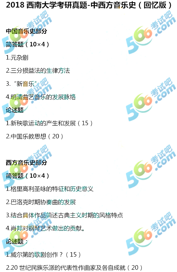 专业课半岛在线注册资料 本站小编 半岛在线注册 2018-01-03西安音乐学院半岛在线注册真题学硕中西方音乐史(中音史部分回忆版) ...