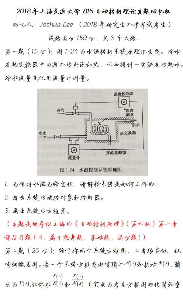 2018年上海交通大学816自动控制理论半岛在线注册真题