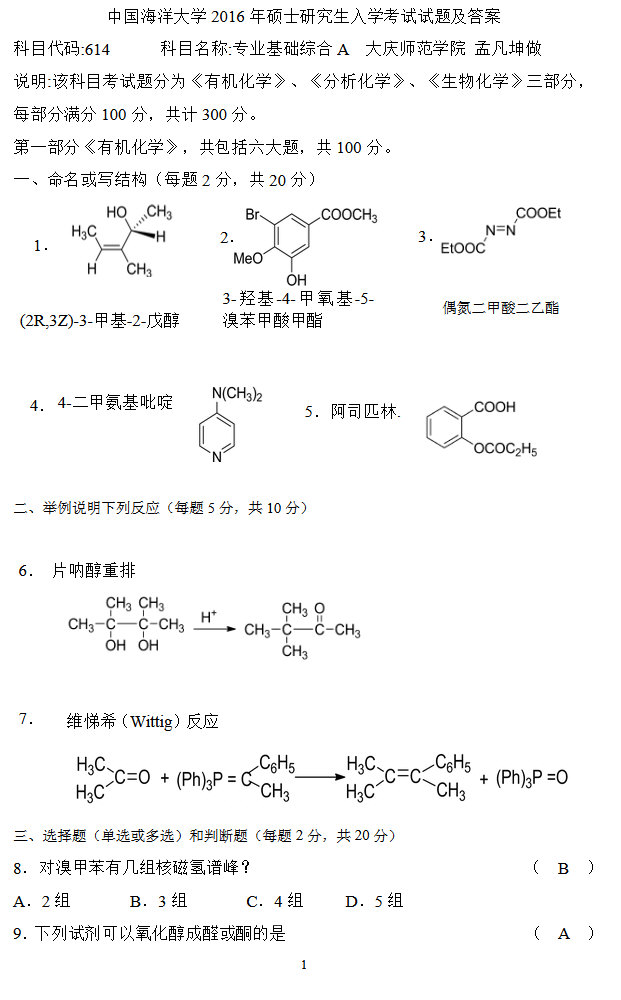 专业课半岛在线注册经验 本站小编 FreeKaoyan 2018-01-23一.选择题(20题)(1)林德拉试剂的组成(2)物质R,S构型判断(3)SN1,SN2反应的区分与速率比较(4)2009年诺贝尔化学奖研究方向(5)几种物质IR波数大小比较(炔,烯等)(6)几种不同结构的酮的反应活性(7)区分一对旋光异构体(名字忘记了)所用到四大谱中哪一个较合适(8)几种环酮,共轭 ...