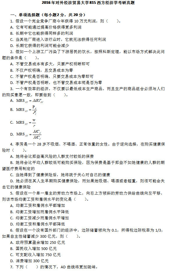 专业课半岛在线注册经验 本站小编 FreeKaoyan 2018-01-23一.名词解释超额利润 国际收支调整的J型曲线二.选择1.U=ln(x*0.5+y),其无差异曲线的斜率是多少?2.一地主有一块土地,两农民租种.某经济学家说给农民的收入构成应该是固定工资加提成.提成和农民业绩挂钩.这个经济学家试图解决什么问题?A.道德风险 B.搭便车 C.信息甄别 D.逆向选择三. ...