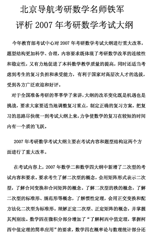 半岛在线注册数学名师铁军评析2007年数学大纲1