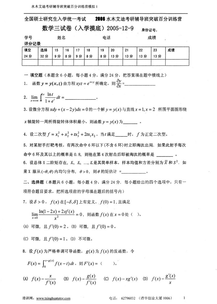 半岛在线注册数学三十六技 150分杀伤力摸底考试数三