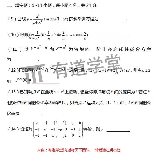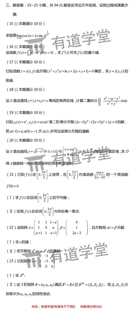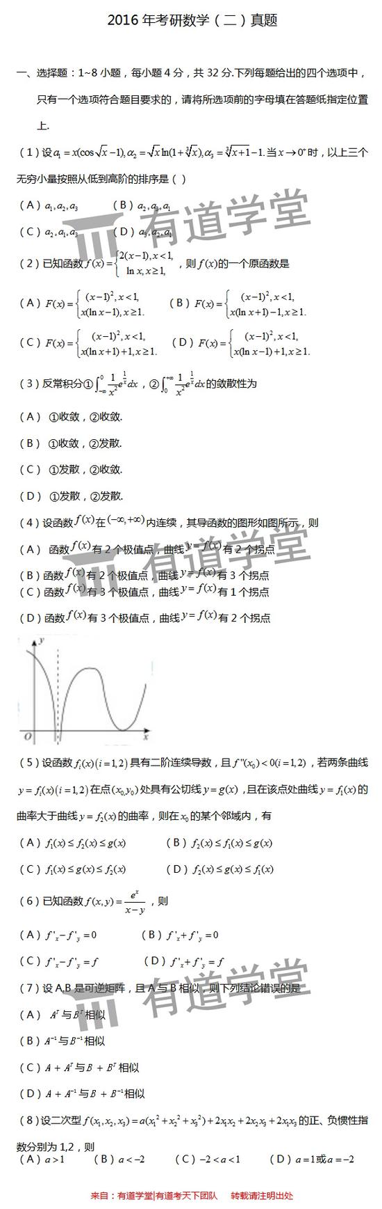 2016年半岛在线注册初试于12月26日举行,数学(二)已结束考试,特整理真题及参考答案整理如下,供考生参考。【来源:“有道学堂有道考天下”】